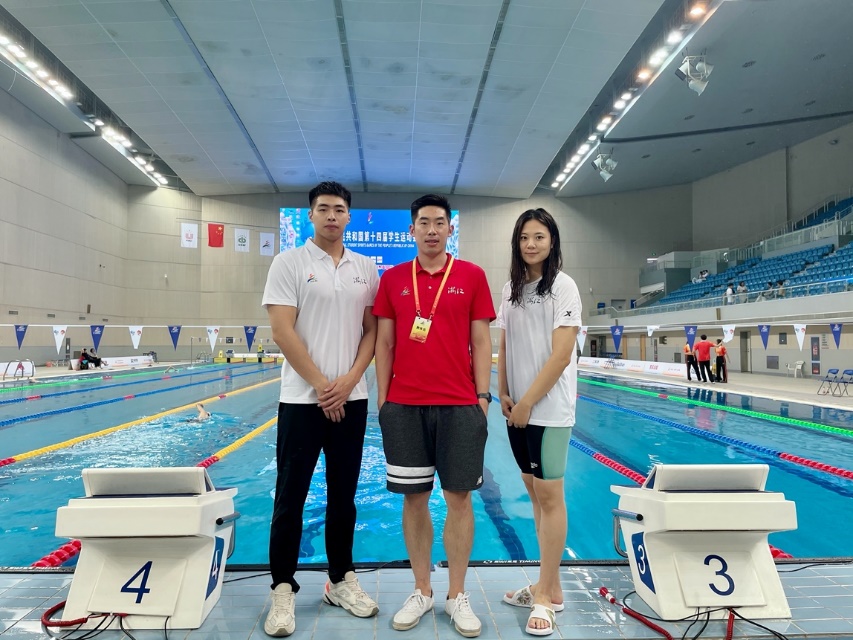 7月12日至17日,由教育部、国家体育总局和共青团中央主办,山东省教育厅、青岛市人民政府联合承办的中华人民共和国第十四届学生运动会在青岛举行。我校游泳队两名学生运动员(商科元、施奇雯)代表浙江省大学生游泳队参赛,在教练员张朕的带领下取得了好成绩。其中商科元(工商1401)获得男子乙组200米自由泳第四名、男子乙组4*100米自由泳接力第四名、男子乙组4*100米混合泳接力第四名、男女乙组4*100米自由泳接力第五名以及男子乙组4*200米自由泳接力第五名,施奇雯(会计1701)获得男女甲组4*100米自由泳接力第五名、女子甲组400米自由泳第六名、女子甲组4*100米自由泳接力第六名、女子甲组4*200米自由泳接力第七名以及女子甲组800米自由泳第八名。