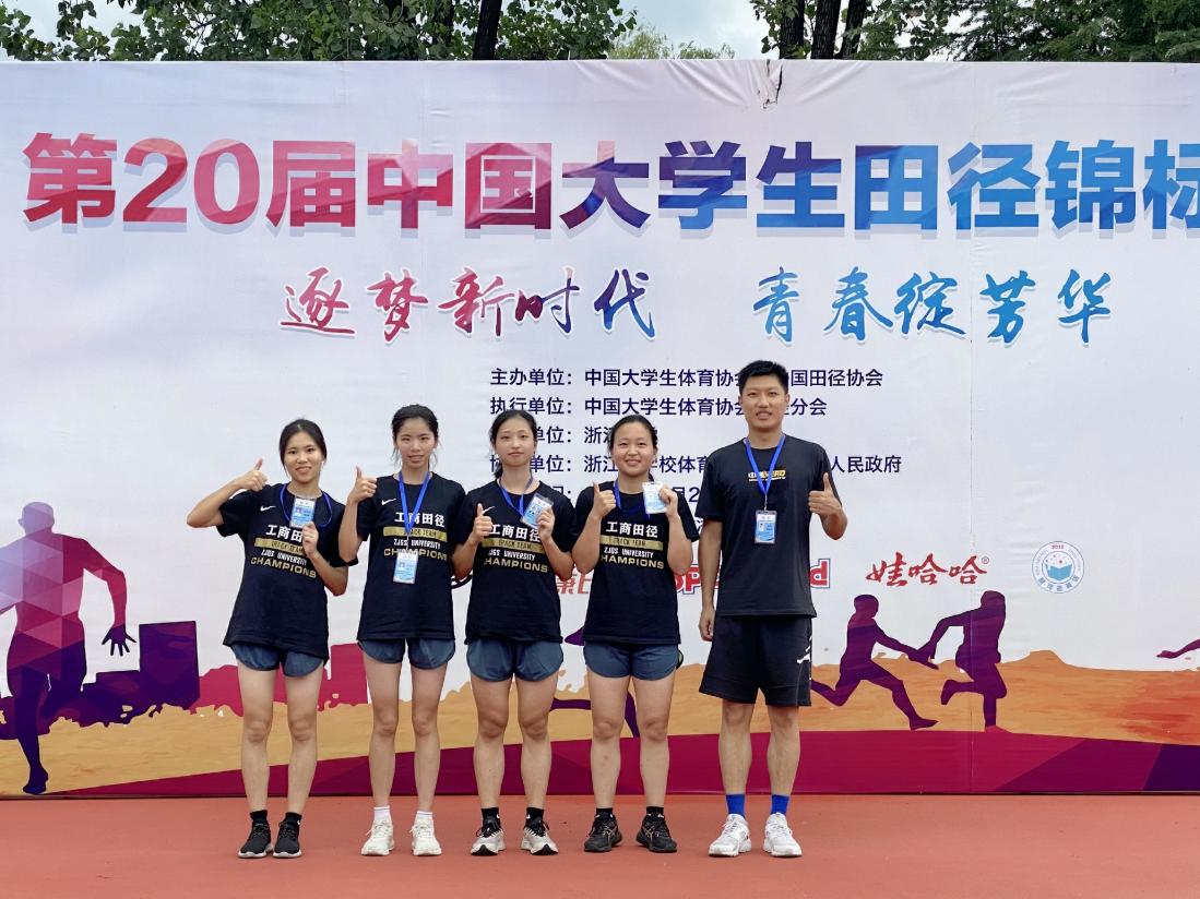 7月31日至8月4日,我校田径队在团长赵英军,领队郑苏法、徐峰以及教练员夏秋冬、李敏雪、施兰平等老师的带领下参加了第20届中国大学生田径锦标赛,取得了近十五年来的最好成绩(2006年以来)。其中运动员方耀杰(统计与数学学院)获男子甲组跳高全国亚军,邹佳娜(经济学院)获女子甲组400米栏全国亚军和400米全国第四名,王红雪(会计学院)、范剑君(外国语学院)、邹佳娜(经济学院)和陈怡(经济学院)获4*400米接力赛全国第五名,萨塞克斯人工智能学院李文鑫获男子甲组跳高全国第八名。