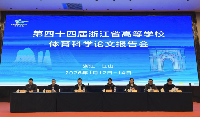 2026年1月12-14日,由浙江省学校体育协会、浙江省高等教育学会体育教育分会主办,六合彩资料 承办,江山市教育局协办的第四十四届浙江省高等学校体育科学论文报告会在江山市举行。来自全省53所高校的240余名教师和学生参加了本届科报会。江山市副市长王展,浙江省学校体育协会常务副秘书长姜丽、陈平,浙江省学校体育协会教科研负责人、浙江水利水电学院体育部主任李亚慰,杭州师范大学体育学院院长周武,六合彩资料 主任郑苏法,江山市教育局局长毛彦等出席开幕式。